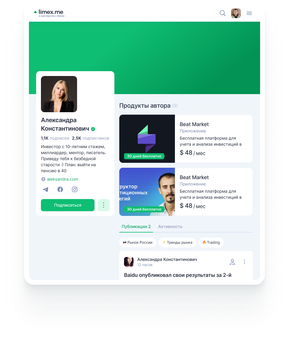 Познакомьтесь с Limex — социальной сетью для инвесторов и трейдеров
